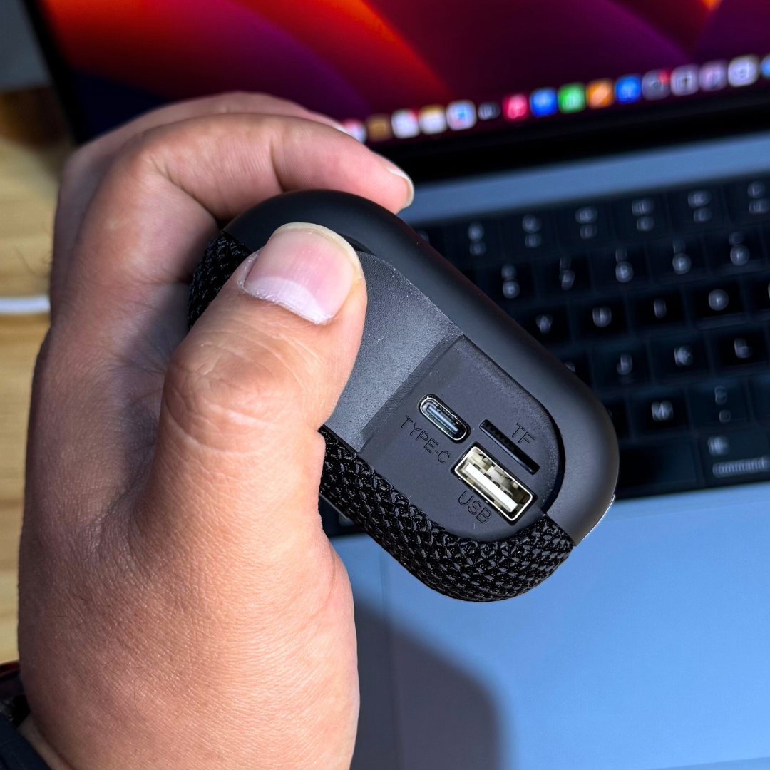 ¡Pequeña por fuera, poderosa por dentro! La KIMISO PocketBass 5W es la bocina portátil que te acompaña a todos lados con un sonido sorprendentemente fuerte para su tamaño compacto. Ideal para llevar a tus reuniones, viajes, caminatas o simplemente disfrutar tu música favorita en casa.